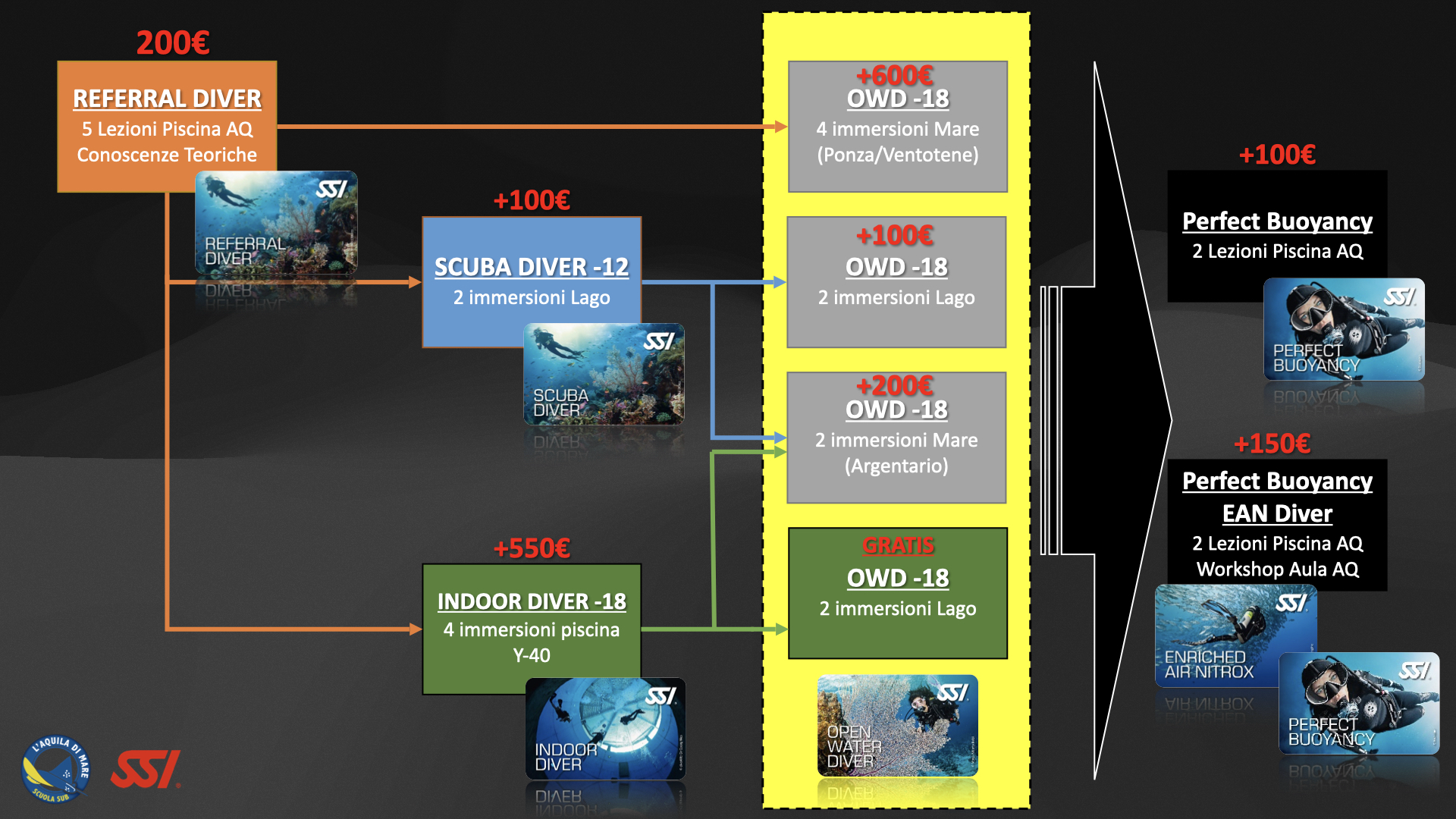 Adesso puoi costruire il tuo corso sub a L'Aquila. Un percorso modulare che si adatta a tutte le esigenze di tempo e di spesa. Pensato da noi per voi! Leggi tutto per maggiori dettagli.